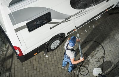 Exterior washing involves cleaning the outer surfaces of your RV to remove dirt, dust, and debris. This service helps to maintain the vehicle's shine and protects it from potential damage caused by the buildup of environmental contaminants. A clean exterior also improves the overall aesthetic appeal of your RV and can even contribute to its resale value.